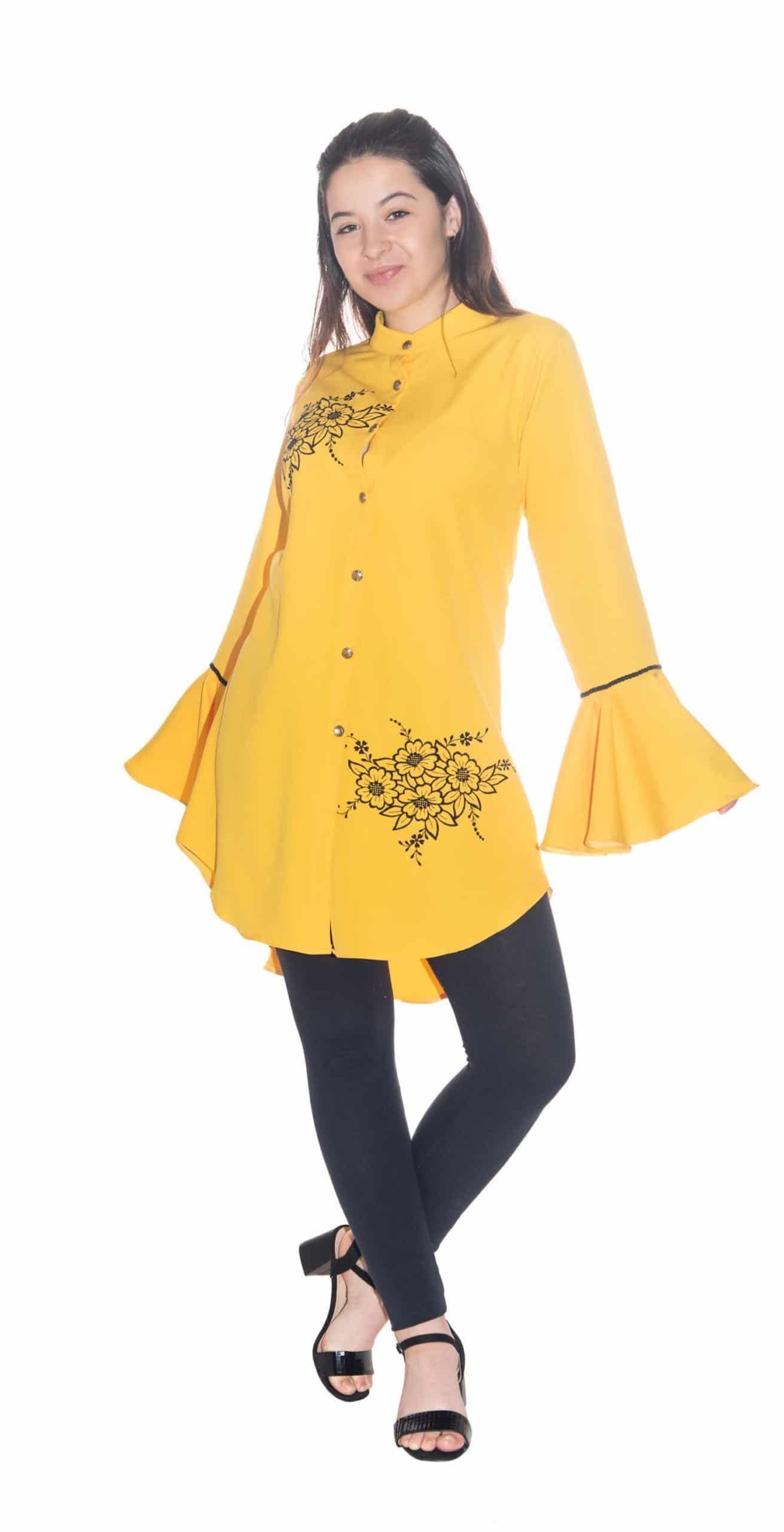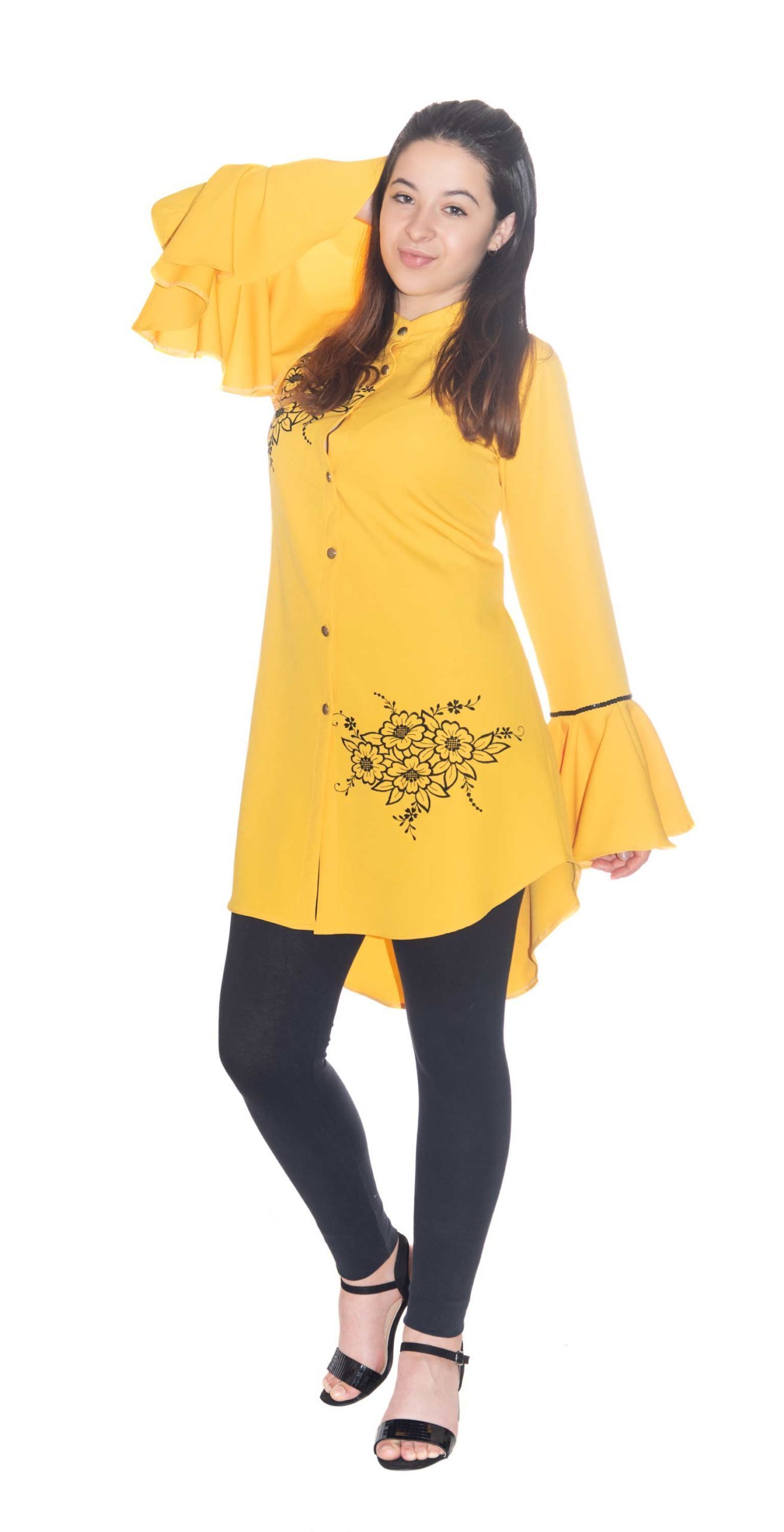 Слънчево жълто, съчетано с черна бродерия на цвета.